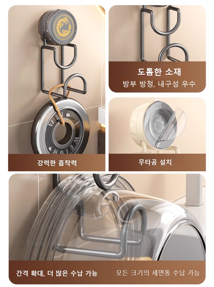 럭셔리 흡착식 세면통 수납 걸이 후크